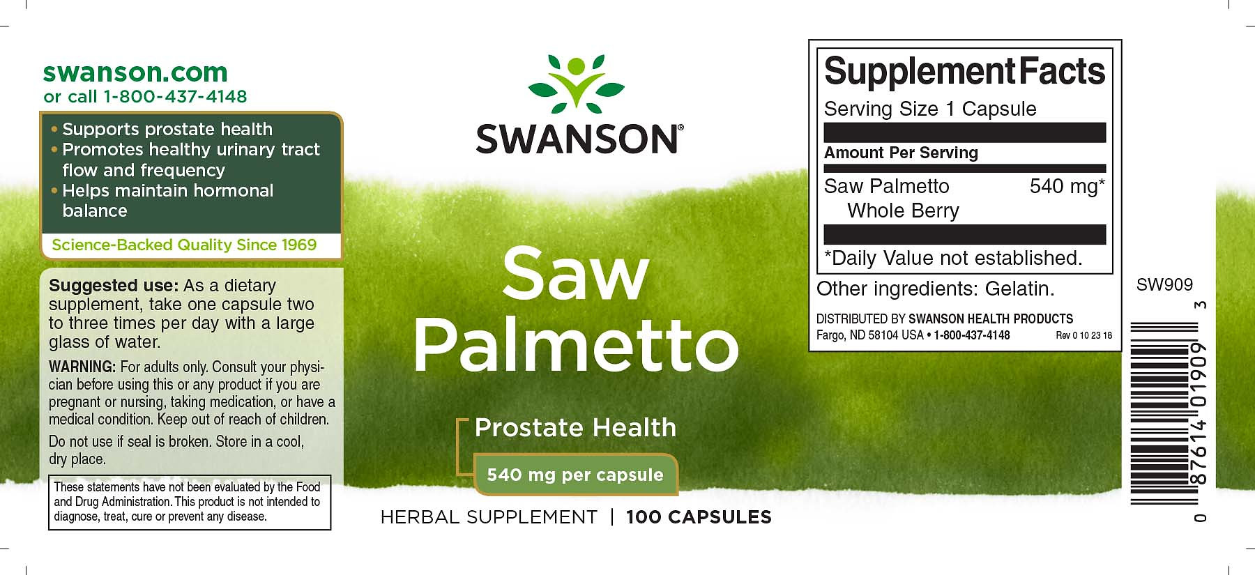 Swanson Saw Palmetto je doplnok stravy s obsahom:
