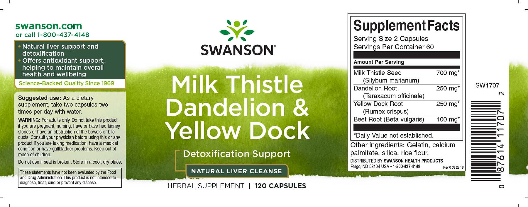 Swanson Milk Thistle Dandelion & Yellow Dock je inovatívny doplnok stravy s obsahom: