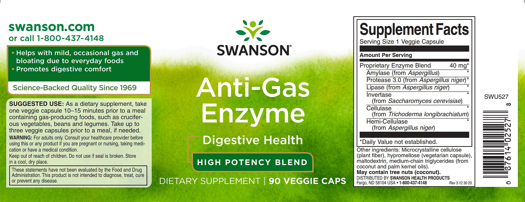 • Enzýmy v Swanson Anti-Gas Enzýme sú vyrobené z rastlinných zdrojov a sú vhodné pre vegánov.